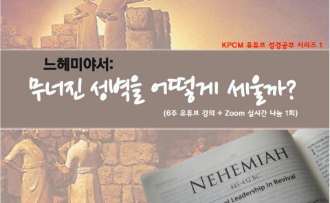 KPCM 유튜브 성경공부 시리즈 1 웹에디터 KPCM 최신포커스 KPCM 유튜브 성경공부 시리즈 1 2020년 KPCM 유튜브 성경공부 첫번째 시리즈 <느헤미야서>가 10월 20일부터 매주 화요일 진행됩니다. 정영환 목사의 느헤미야서에 대한 말씀 성찰을 6주간 유튜브로 업로드하며 마지막 주는 Zoom을 통해 나눔과 질의응답 시간이 마련됩니다. 강좌명 : 느헤미야서: 무너진 성벽을 어떻게 세울까? (6주 유튜브 강의 + Zoom 실시간 나눔 1회) 내용: 많은 것이 무너져 내린 오늘의 […]