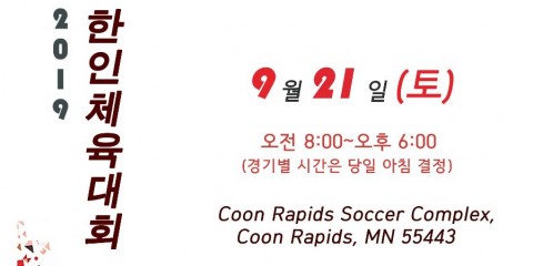 일시: 9/21(토) 오전 8시~오후 6시 문의: 봉사위원회, 장선영 집사, 이미숙 장로 장소: Coon Rapids Soccer Complex (1705 111th , Coon Rapids, MN 55443) 점심식사 오전 11시, 참석자 게시판에 기명 요망