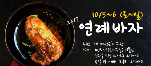 10/5~6(토~주일), 문의: 최의숙 집사 주관…제 1여선교회 주관 날짜…10/5~6(토~주일) 이틀간 토요일 오전 10~오후 2시까지 주일 1부 예배 후부터 2시까지 바자 메뉴…김밥 빈대떡 떡볶이 배추김치 갈비양념 무우말랭이 멸치볶음 새우젓 등 10/6(주일)…국밥 판매($5)
