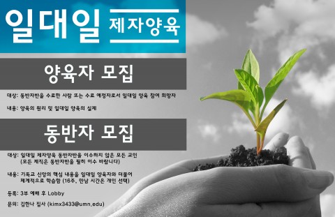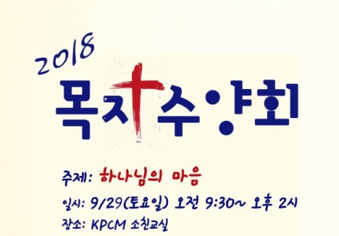 우리 주 예수 그리스도를 위하여 성도간의 교제와 여럿의 장작으로 모여 태워지는 목장 Cell Group이 되기를 사모하는 목자/부목자, 말씀사역자 그리고 관심있는 모든 분들을 초대합니다. 주제: 하나님의 마음 일시: 9/29(토요일) 오전 9:30~ 오후 2시 장소: KPCM 소친교실 대상: 목자/부목자 부부, 말씀사역자 부부 관심 있는 분 누구나 환영합니다! 문의: 안남희 장로, 강금주 집사 *** Babysitting 제공 ***