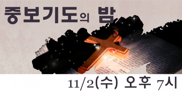 중보기도의 밤 일시: 2016년 11월2일(수), 오후 7시 장소: 대예배실