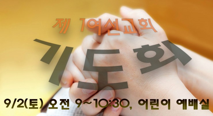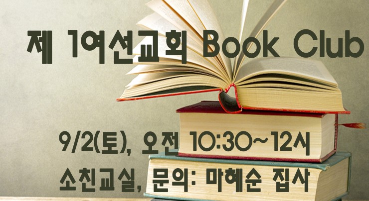 제 1여선교회 기도회: 9/2(토) 오전 9시~10:30 Book Club: 9/2(토) 오전 10:30~12시 (문의: 마혜순 집사)