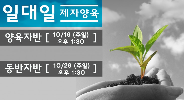 동반자반 종강(열한 번째 만남 – 이 훈련을 마치신 분께): 10월 8일 주일, 오후 1:30, 어린이 예배실 동반자반 수료식: 10월 15일 주일, 3부 예배중 양육자반(동반자반을 수료하신 분들이 양육자가 되시기 위한 강의): 10월 15일 주일, 오후 1:30, 어린이 예배실 제5기 동반자반 오리엔테이션: 10월 29일 주일, 오후 1:30, 어린이 예배실 문의 사항: 김재연 집사님 763-898-2239 (kim1533@gmail.com), 스티브오 […]