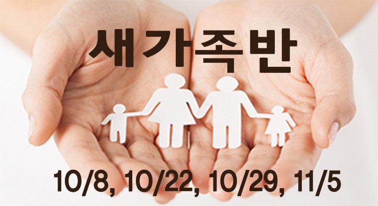 새가족반 일시: 10/8, 22, 29 (주일) 오후 1:30 장소: 소친교실 새가족반을 이수하지 않은 등록 교우 새가족 환영회: 일시: 11/11(토) 오후 5시 장소: 소친교실
