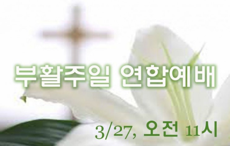 지역 한인교회 연합 새벽예배 오전 6시, 본교회 부활주일 전교인 연합예배 오전 11시, 본당 (당일 1부 및 2부 예배 없음)